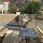Здесь есть оборудованная кухня, с предоставленным холодильником и плитой. Гости оценят наличие террасы с видом на горы и такими удобствами, как обеденный стол.